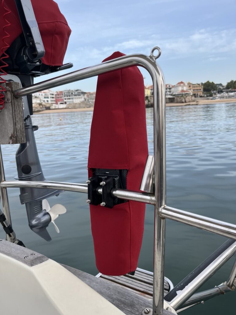 As we were expecting the crossing to Madeira to be mostly downwind, we prepared our boom preventer lines to be ready for use and prepared our EasyGybe boom breaker. Gybing in hard winds can be very dangerous as the boom crosses the cockpit from one side of the boat to the other very fast with risk to take it in the head. For our safety, when sailing downwind in hard wind conditions we use a boom breaker, a device that retains the boom but only partially so it passes the cockpit slower. It already helped us a couple of times, like in Biscay when we made an unwanted gybe when surfing on a wave. Using a breaker also helps prevent damages to the rigg.