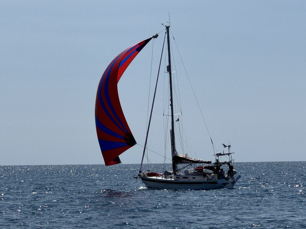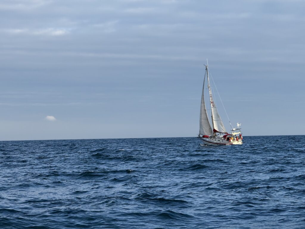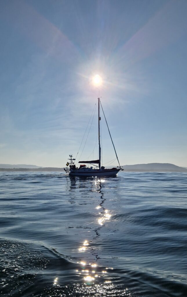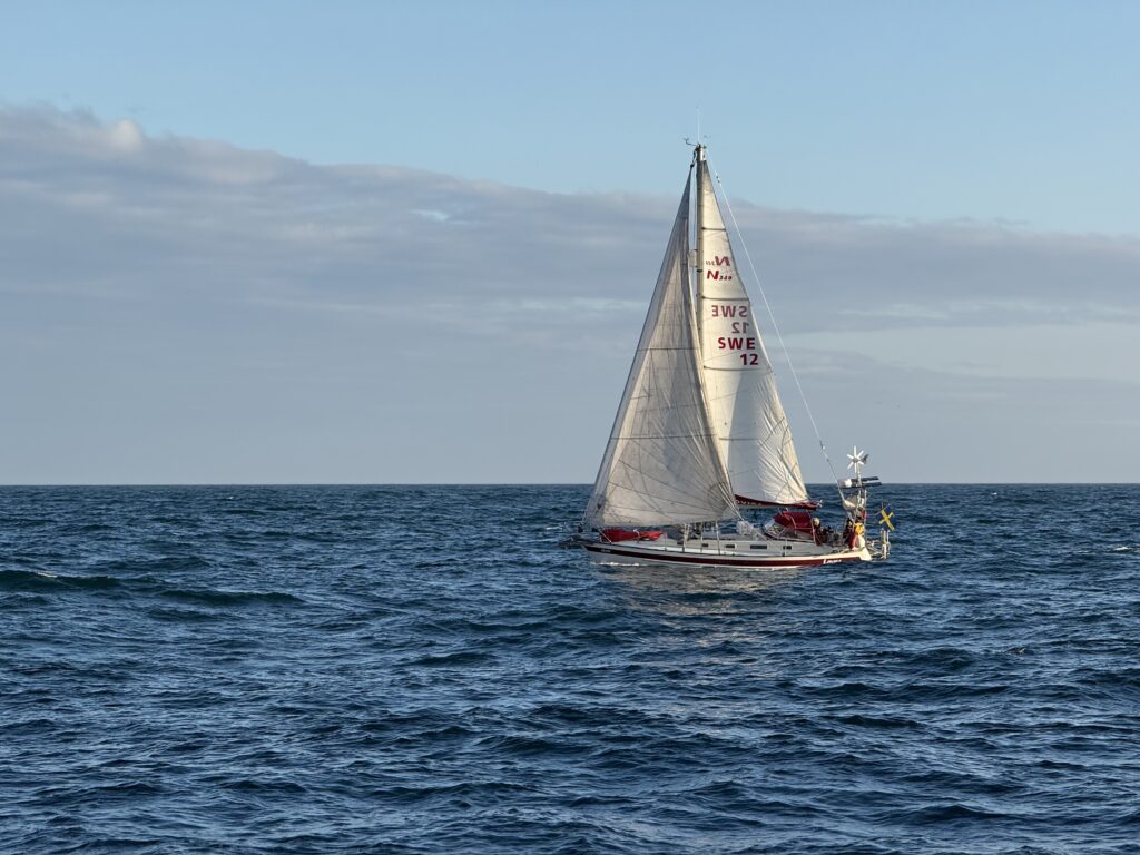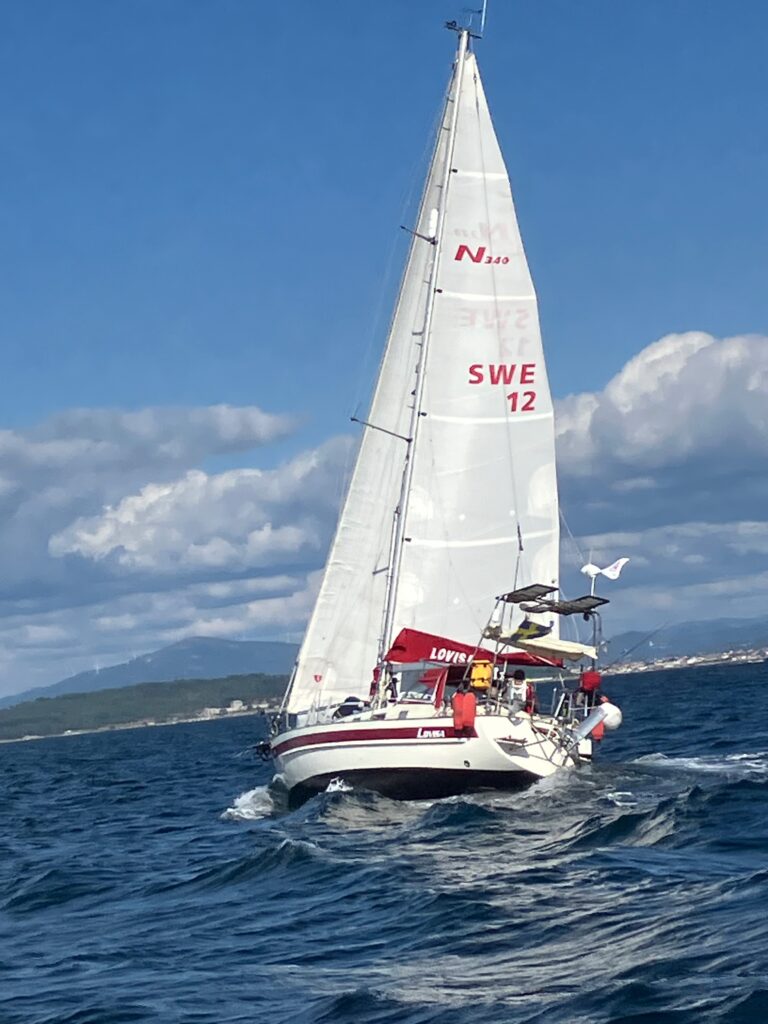 Lovisa on her way from Guernesey to Roscoff. Photo taken by Gunilla on S/Y Alba.