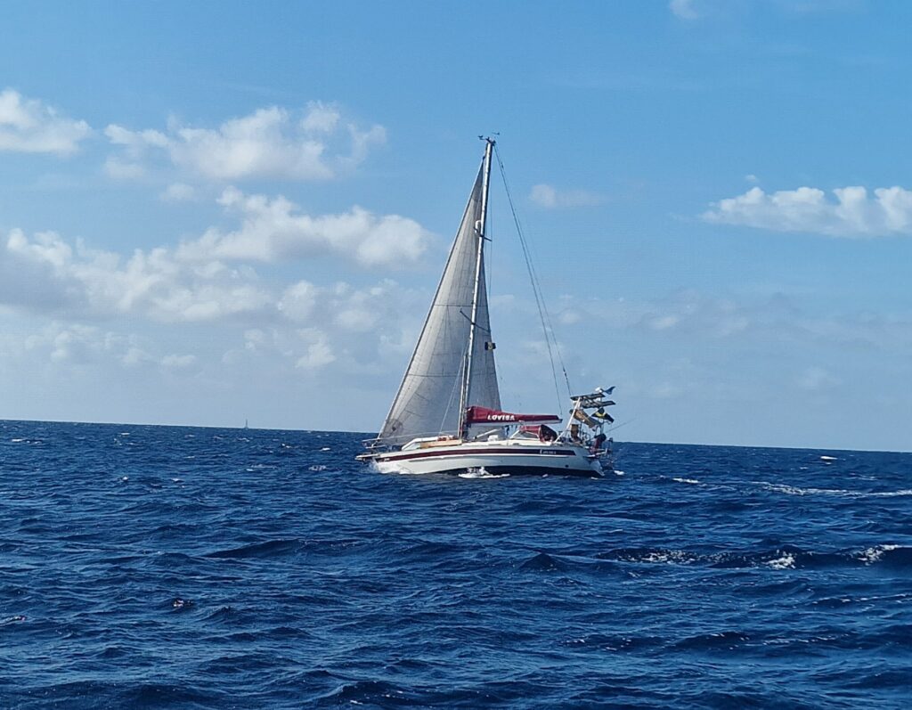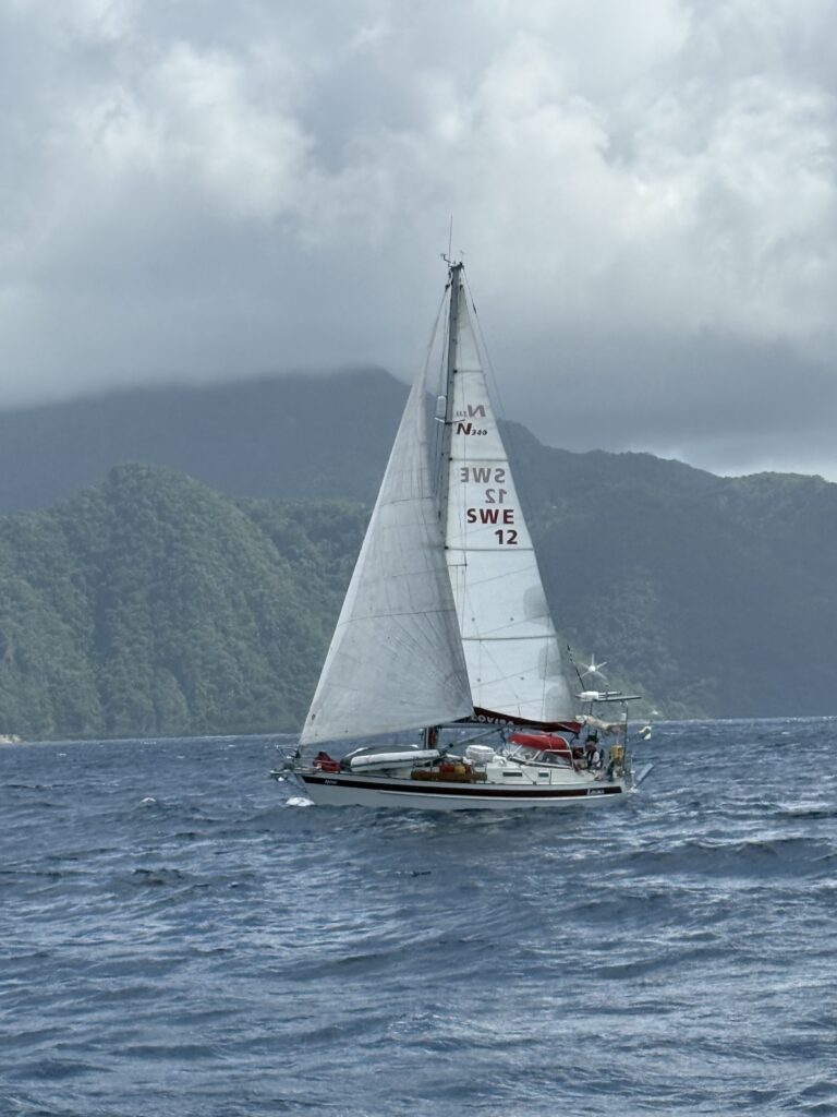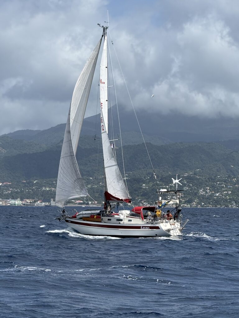 Lovisa along the coast of Dominica on her way to Portsmouth. Photo taken by Gunilla on S/Y Alba.