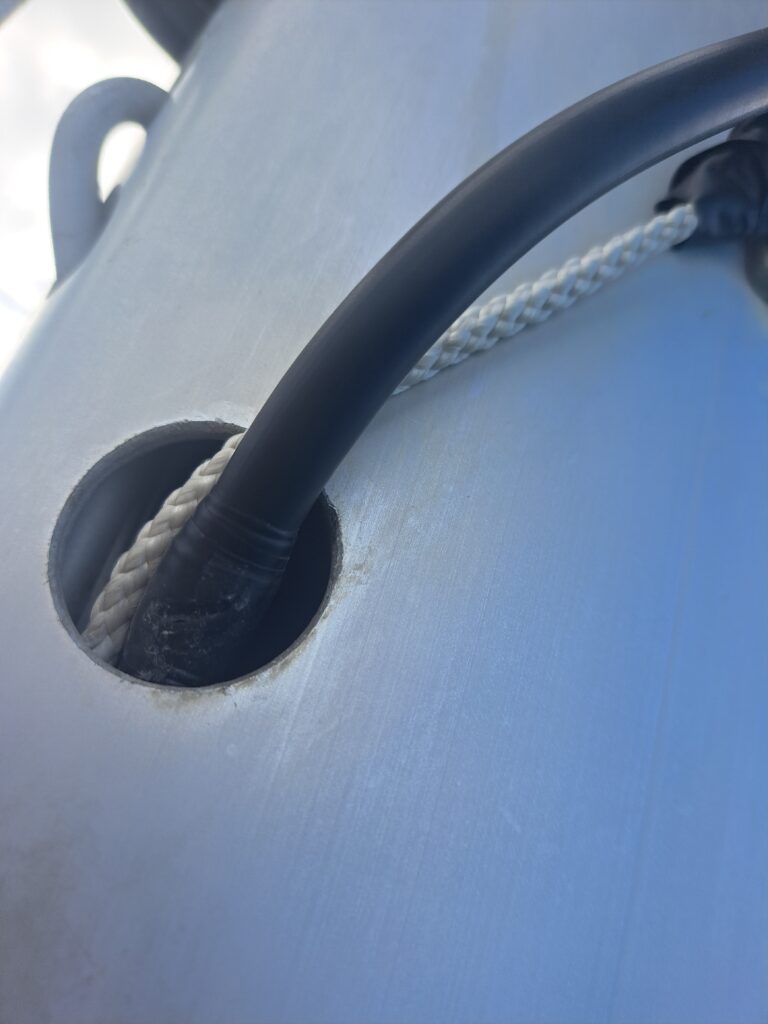 The VHF cable that runs inside the mast is a bit pressed where it gets out of the top of the mast because of its own weight. We have been regularly checking the conditions of it and we added a few layers of electric tape to protect it when we were in Boulogne-Sur-Mer. This time we only checked that the tape was still in place to protect the cable.