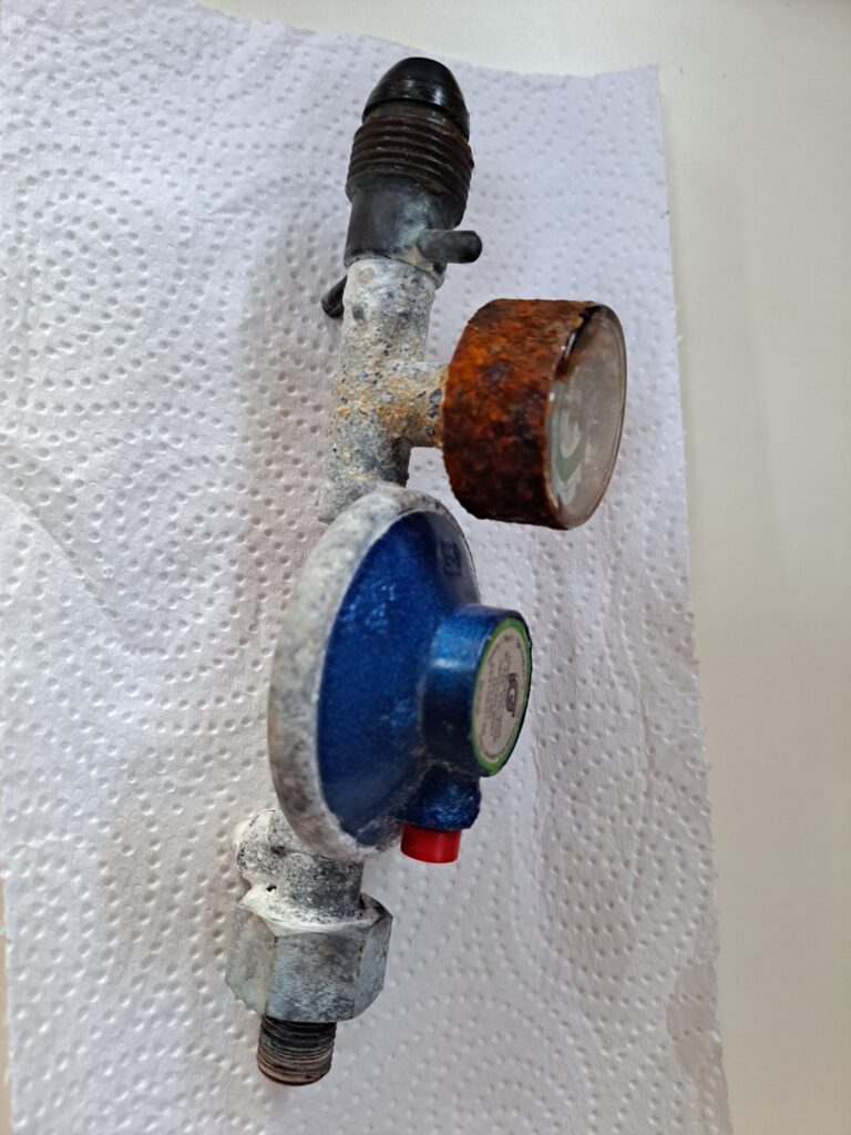 The last thing we want is a gas leakage so we decided to install the spare gas regulator that we carried with us.