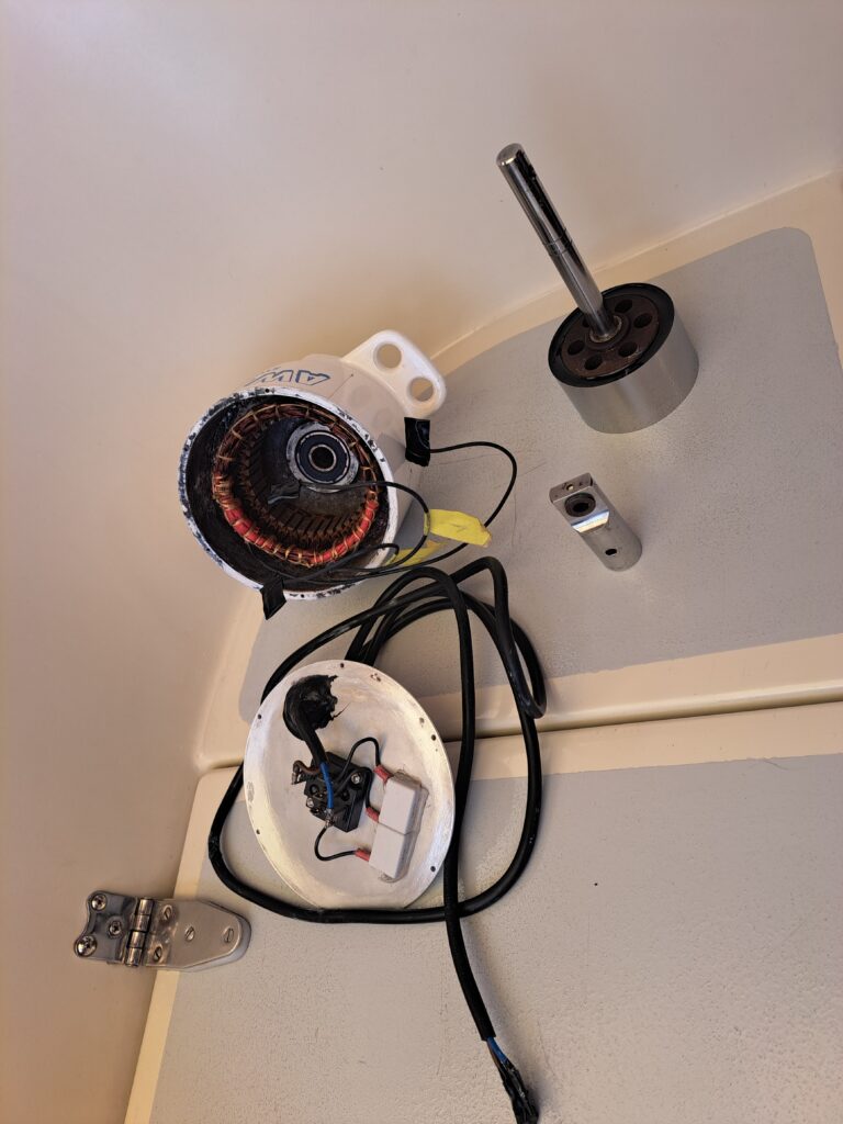 We started to use it when we were on the way to Lanzarote and we used it frequently until we reached the Caribbeans. In the caribbeans, it remained hanging on the pushpit but we didn’t use it. We inspected it to know if we could still rely on it. The internal components were more or less in the same conditions as when we repaired them before leaving Sweden. We cleaned a bit the contact, remove a little bit of dust, apply new sealant and closed again.